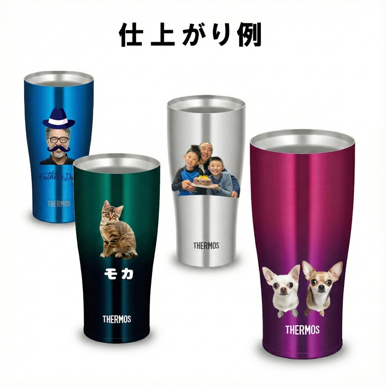 結婚祝いや還暦のお祝い、愛犬・愛猫の思い出、そして新しい門出を祝うプレゼントまで。陶器のような温かみのある質感と、サーモスならではの圧倒的な保温・保冷力が、日常のひとときを特別なものに変えてくれます。単なる「モノ」ではなく、大切な記憶を形にして贈りたい。そんなあなたの想いに寄り添う、上質なカスタムギフトをご提案します。