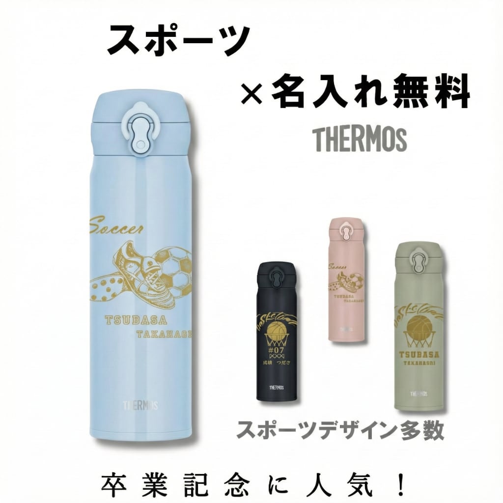## 名入れ無料 サーモス 水筒 ボトル 350ml / 500ml / 600ml / 750ml / 1000ml スポーツイラスト 卒業 卒団 記念 部活 ギフト