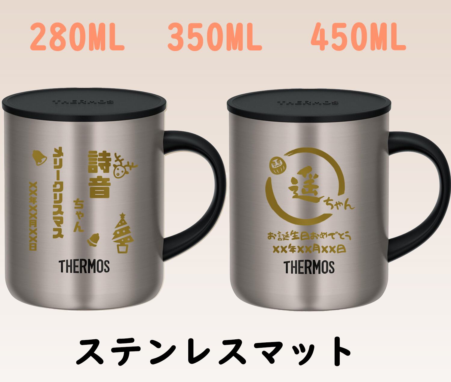 名入れ サーモス プレゼント マグカップ 保温 保冷 280ml 350ml 450ml 真空 断熱 ステンレス 名前入り 彫刻 ギフト お祝い JDG 縁起物