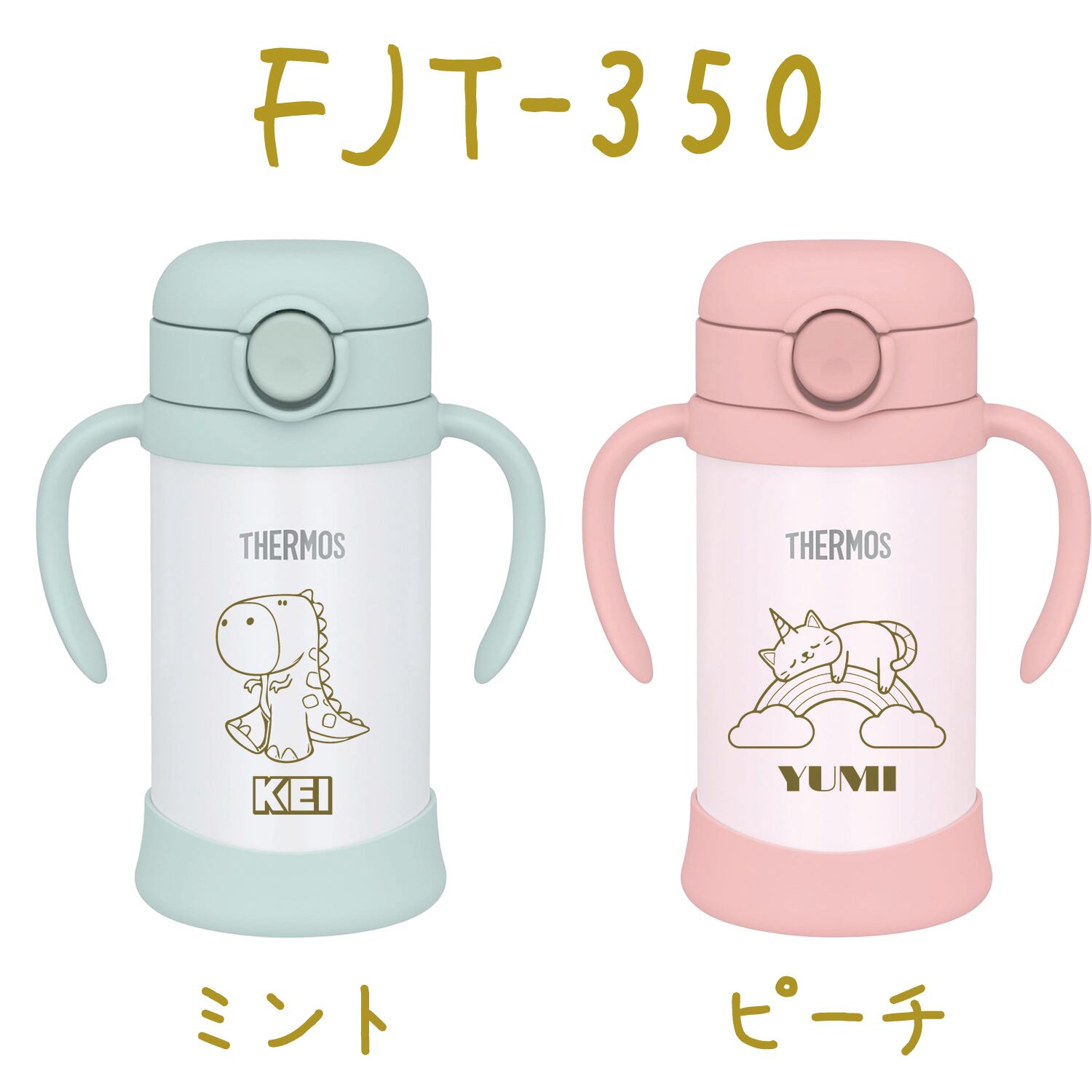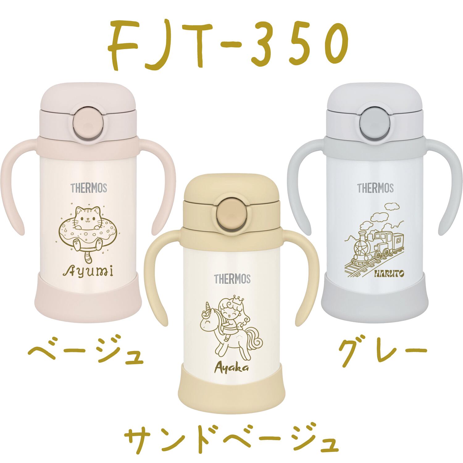 名入れ ベビーストローマグ 出産祝い 水筒 サーモス 子供用 350ml 魔法びん 真空断熱 THERMOS 保冷専用 FJL-350 FHV-350 タンブラー 軽量