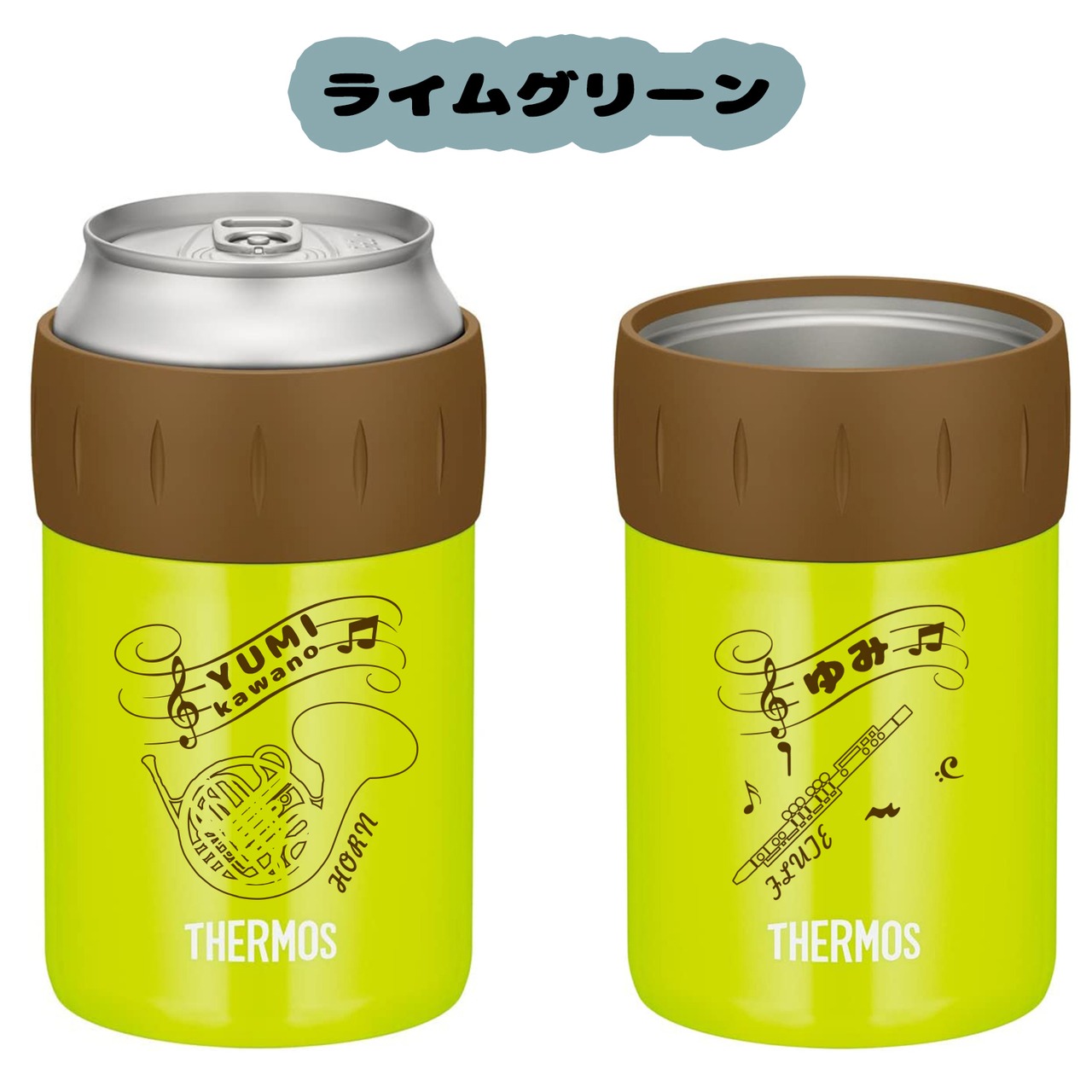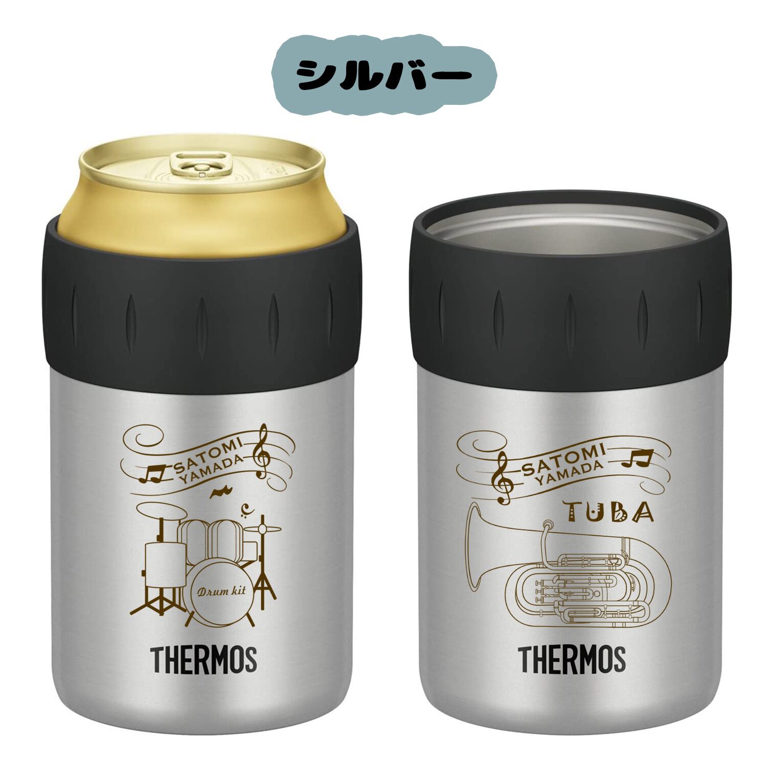 名入れ 缶ホルダー 部活 吹奏楽部 楽器 プレゼント サーモス 保冷 350ml 500ml 真空 断熱 ステンレス 名前入り 彫刻 刻印 ギフト お祝い